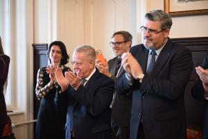 Finalmente, el Embajador Mársico presentó y cedió la palabra, con profunda gratitud por su presencia, al Sr. Jozef Baruhovic, sobreviviente serbio del Holocausto, quien compartió con los invitados su testimonio, un legado vital para asegurar que jamás olvidemos.